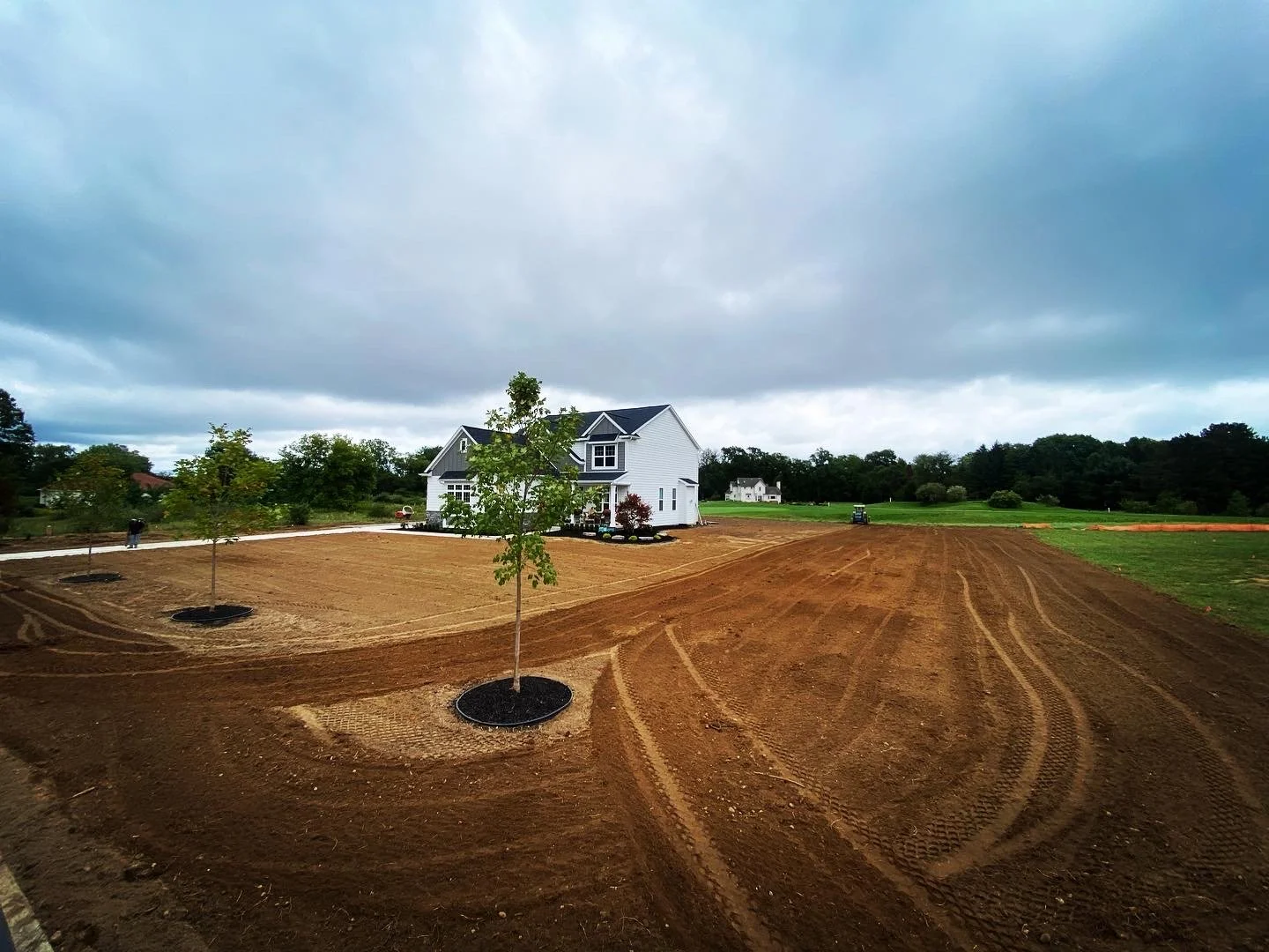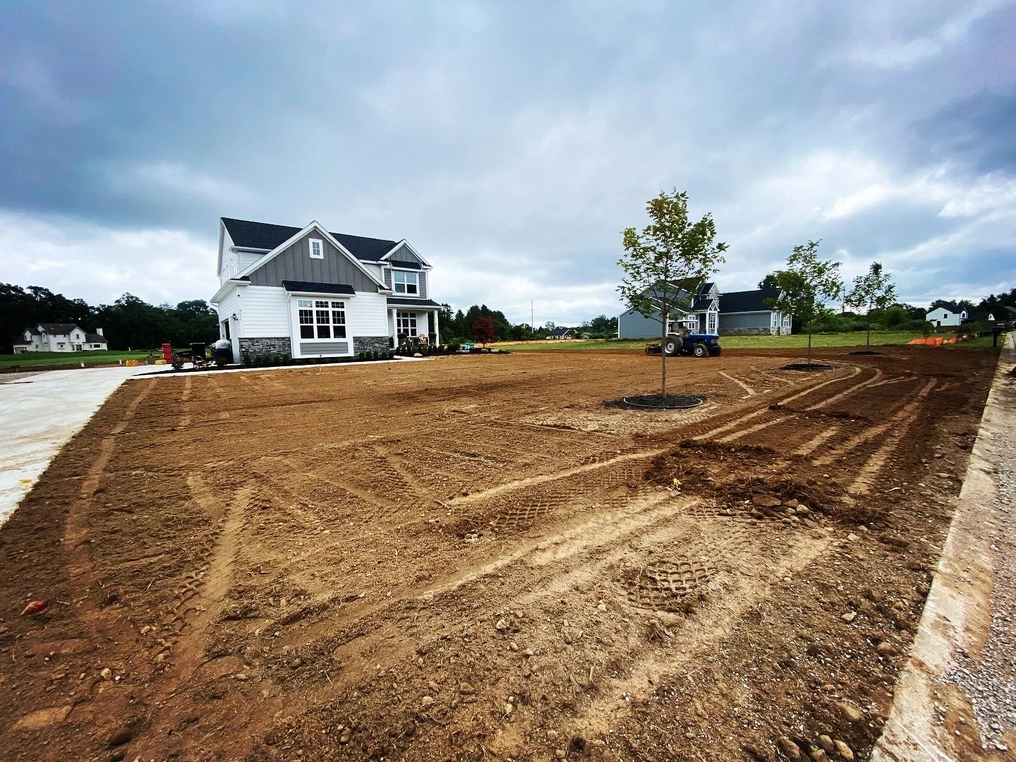 The client had just recently built this house and had a smaller pool at their previous house, utilizing the big backyard to install a big pool was very important to them, as well as a space for them to grill out, and low maintenance landscape for the front yard.Solution: