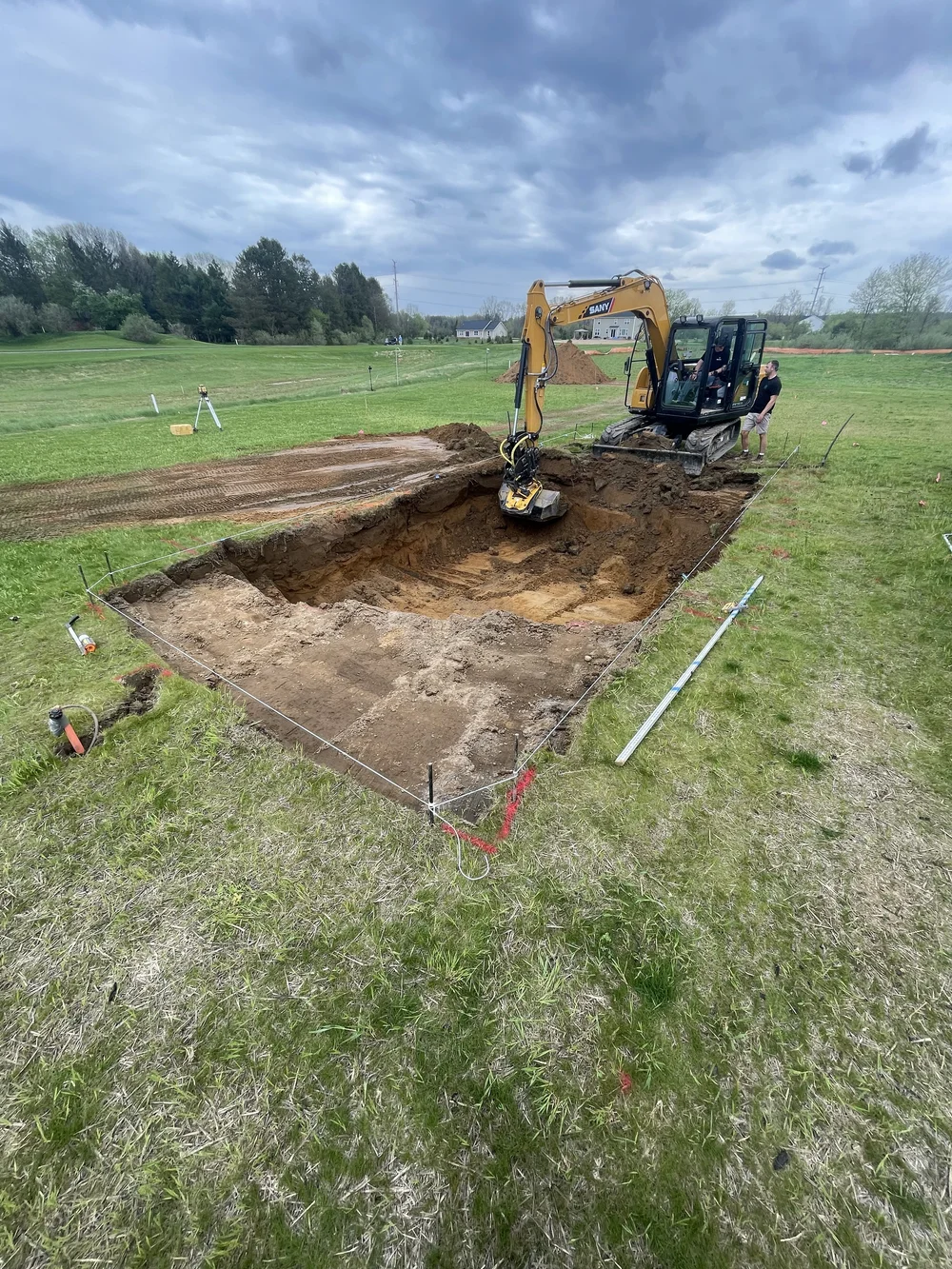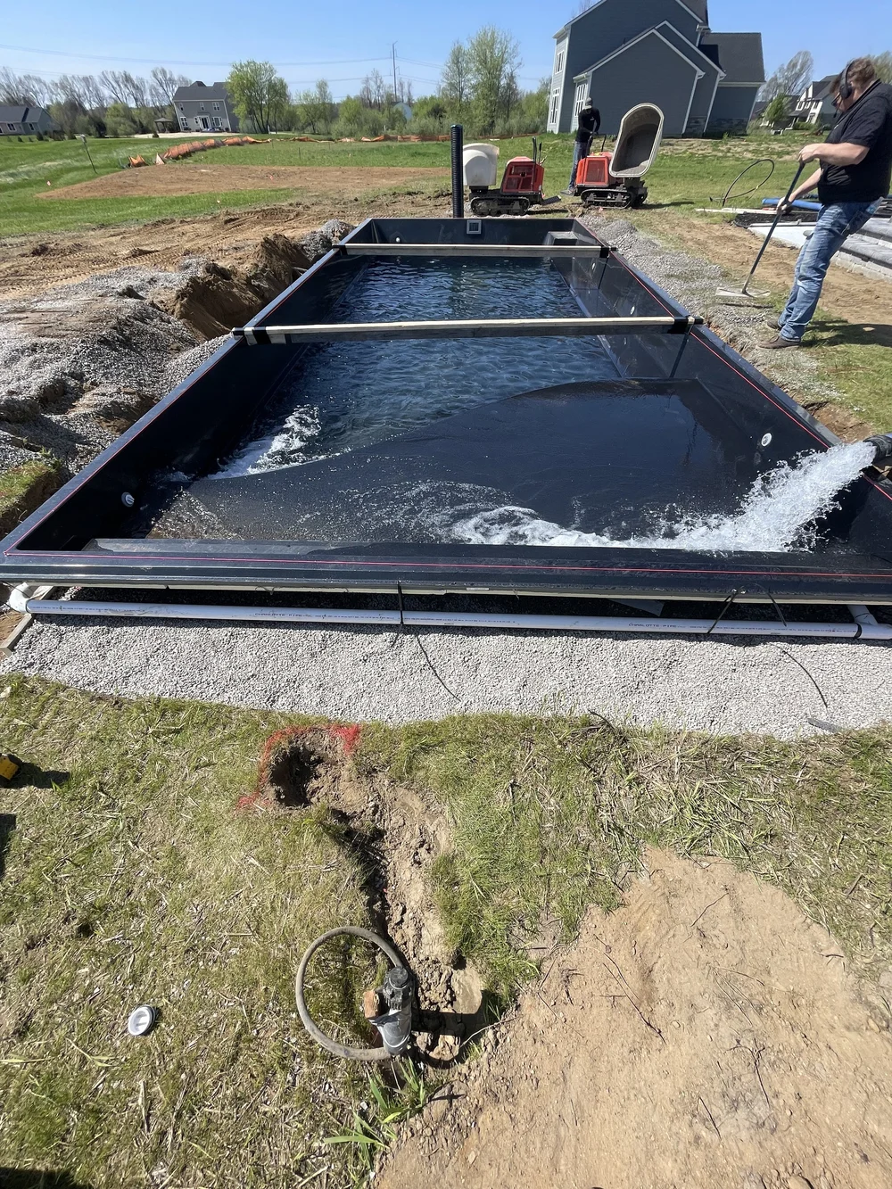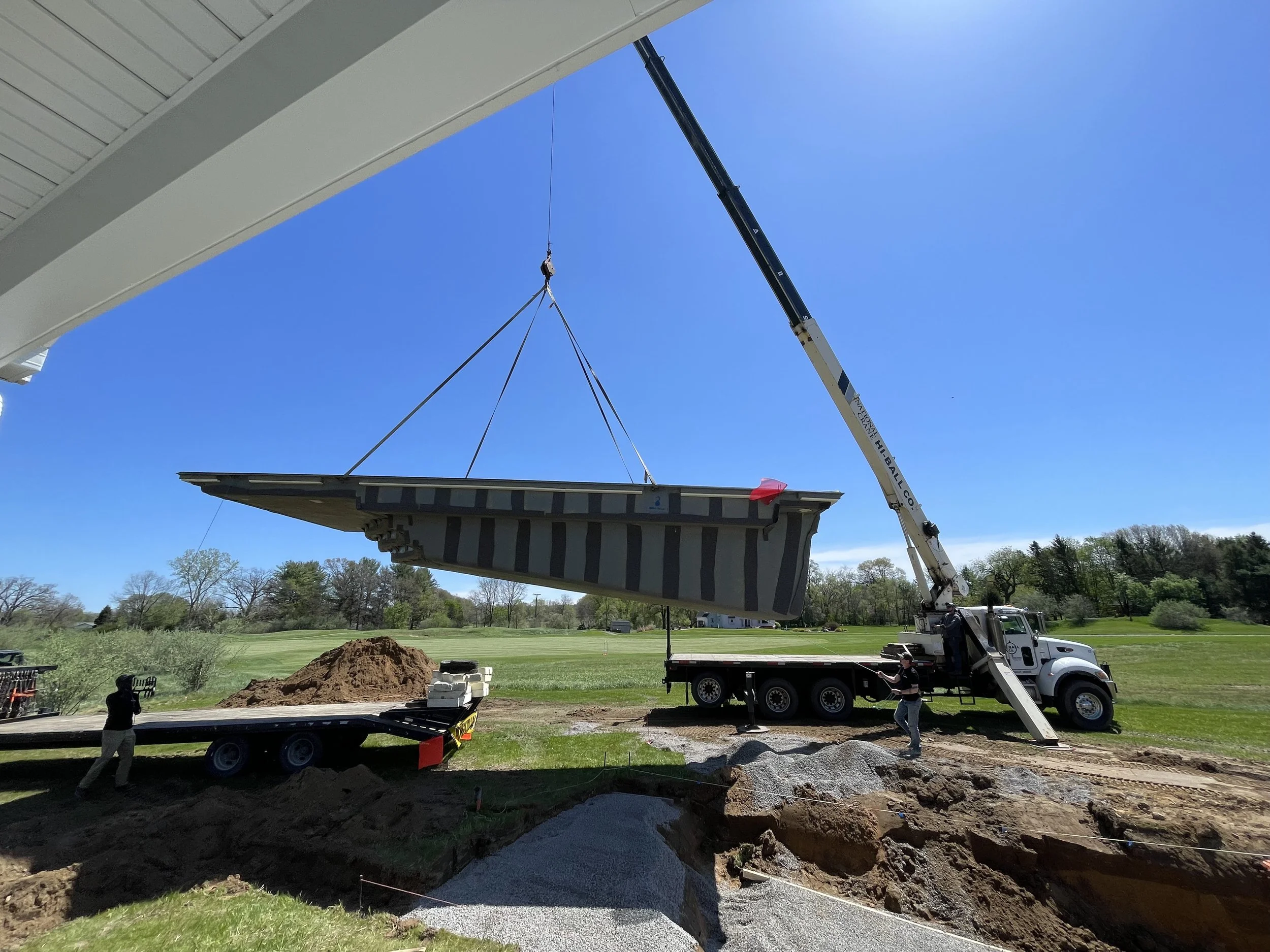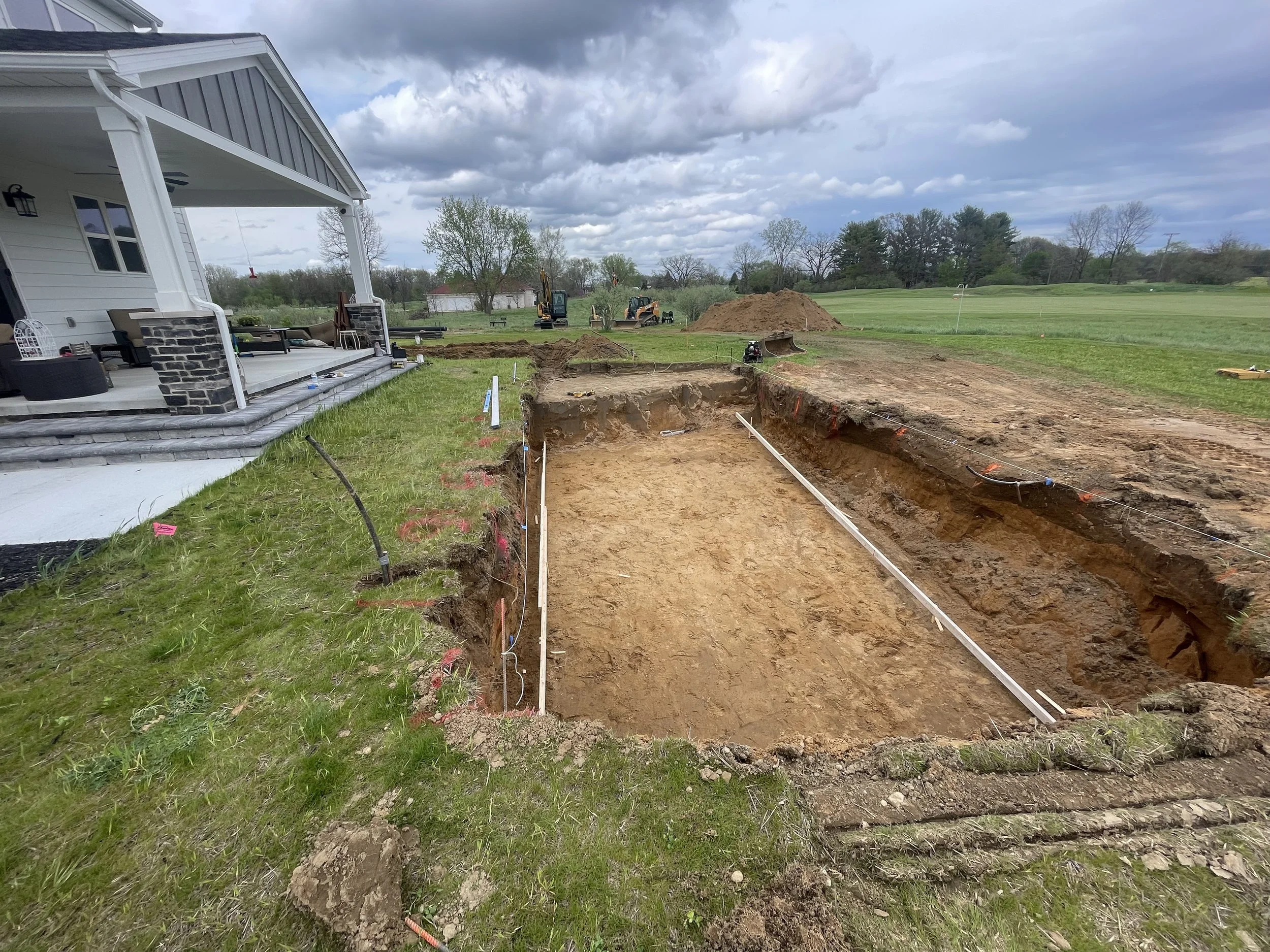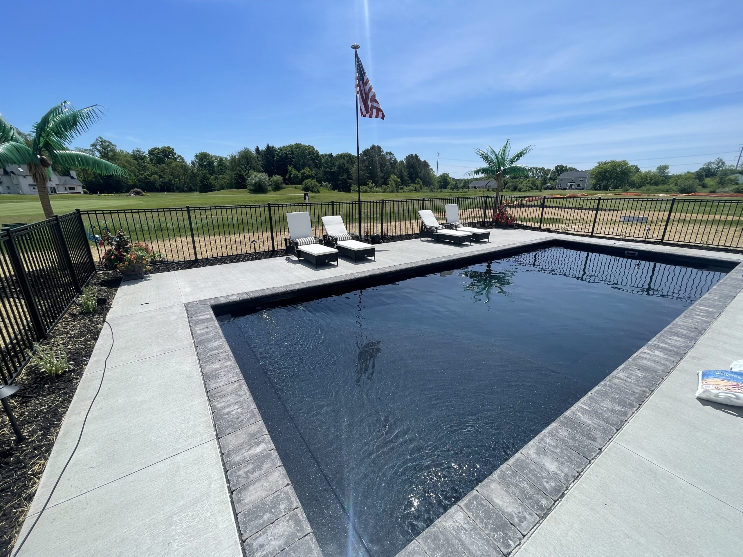 We installed a large 35’ fiberglass pool with a sun shelf, provided a large concrete pool deck, installed a simple low maintenance landscape design in the front and installed a new lawn and irrigation system.Features: