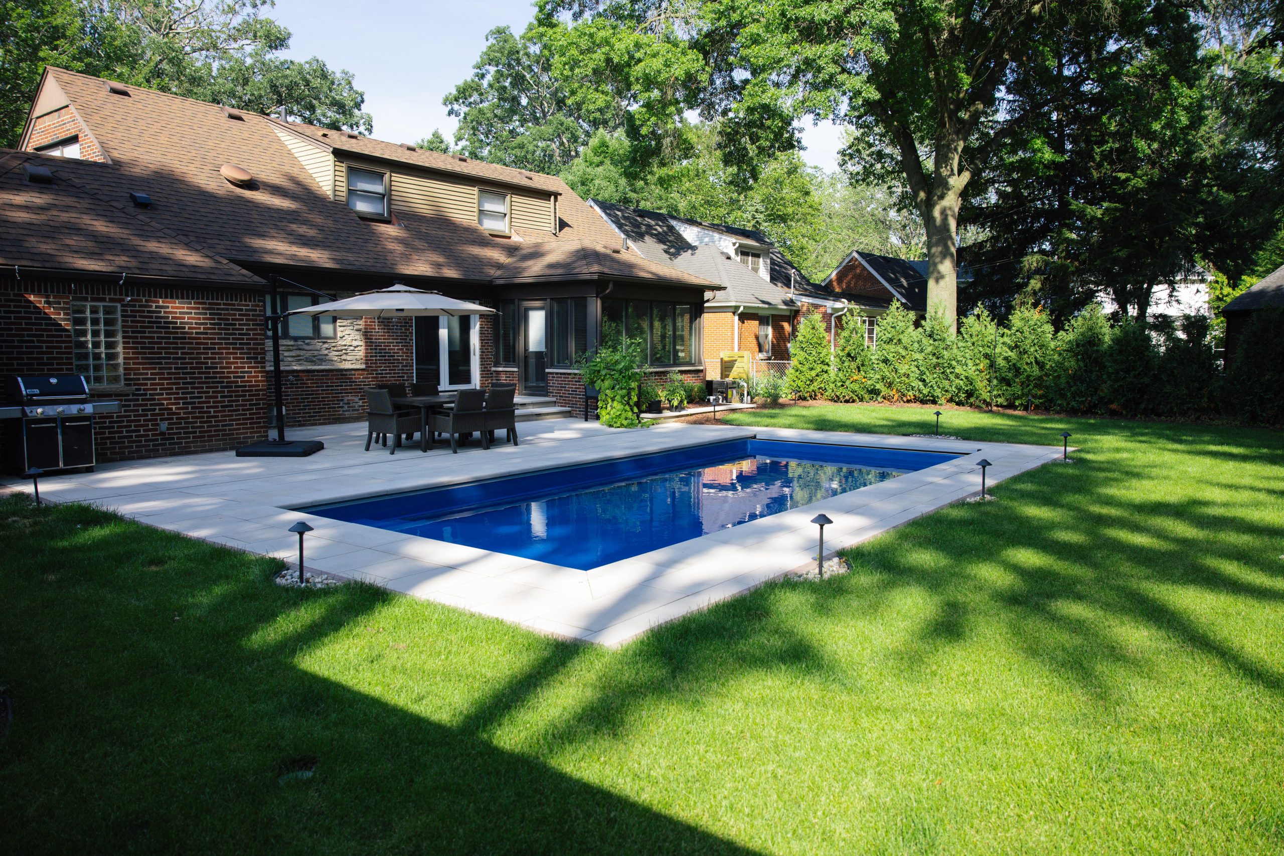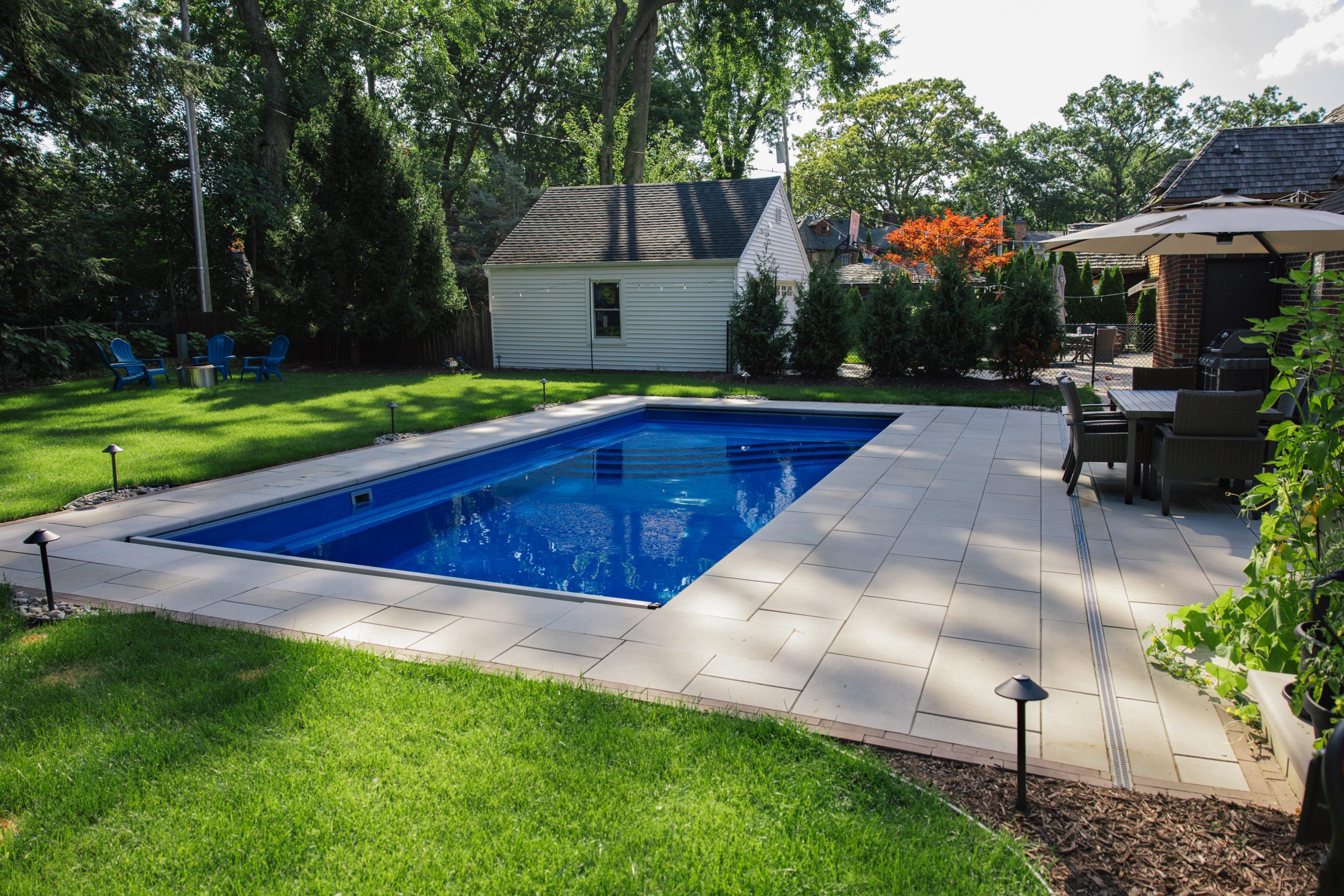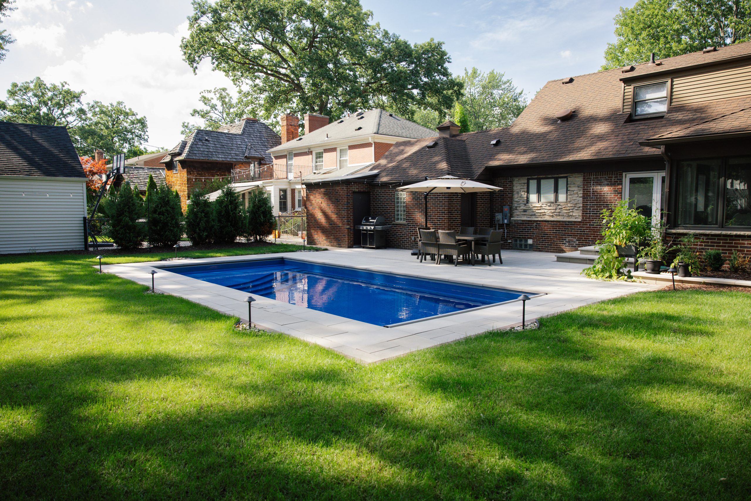 Fiberglass Pool Installation, Paver Patio, New Landscape Installation & Outdoor Living project in Dearborn, MI.
