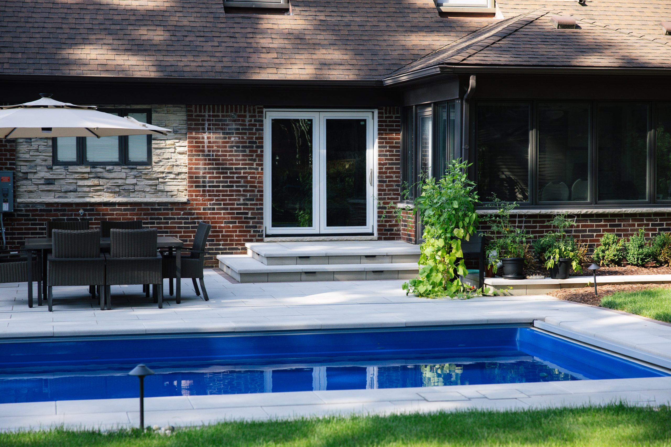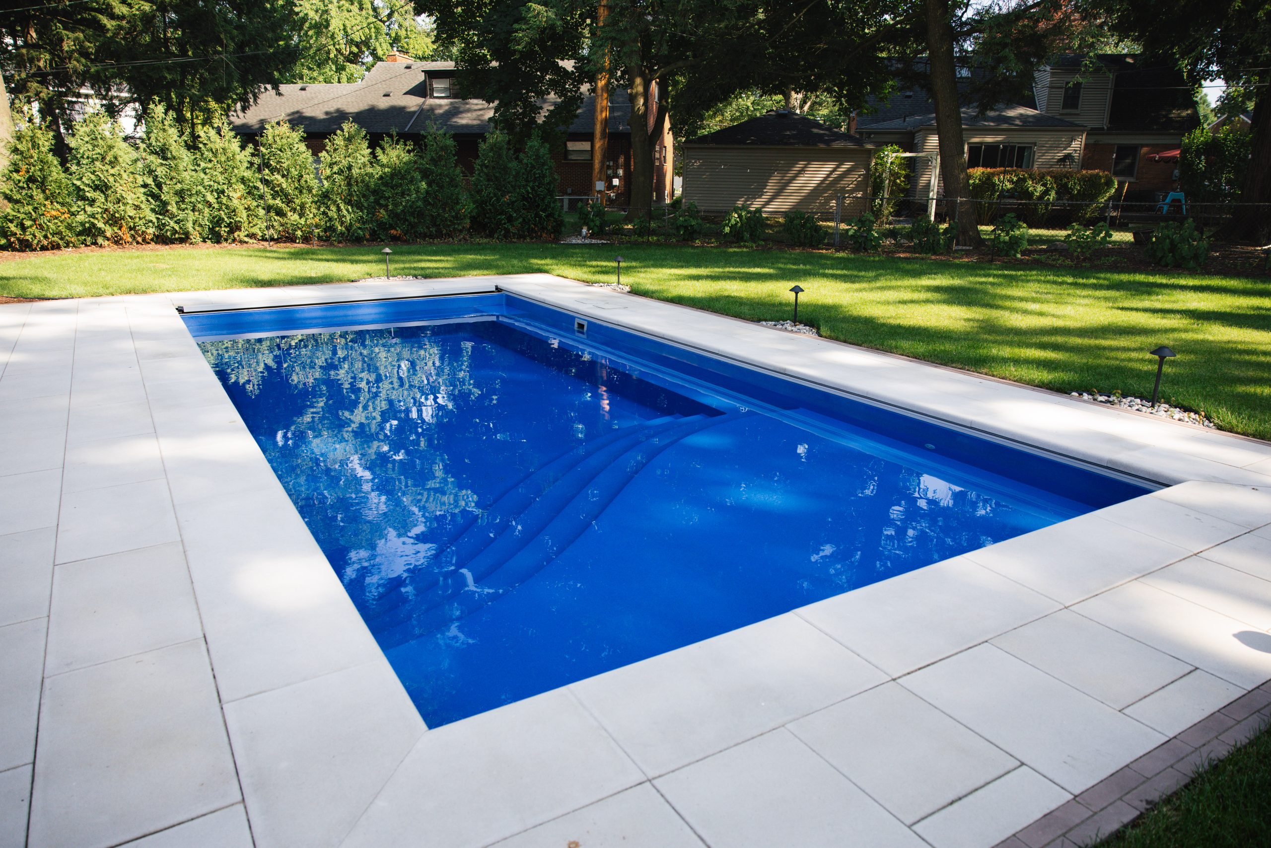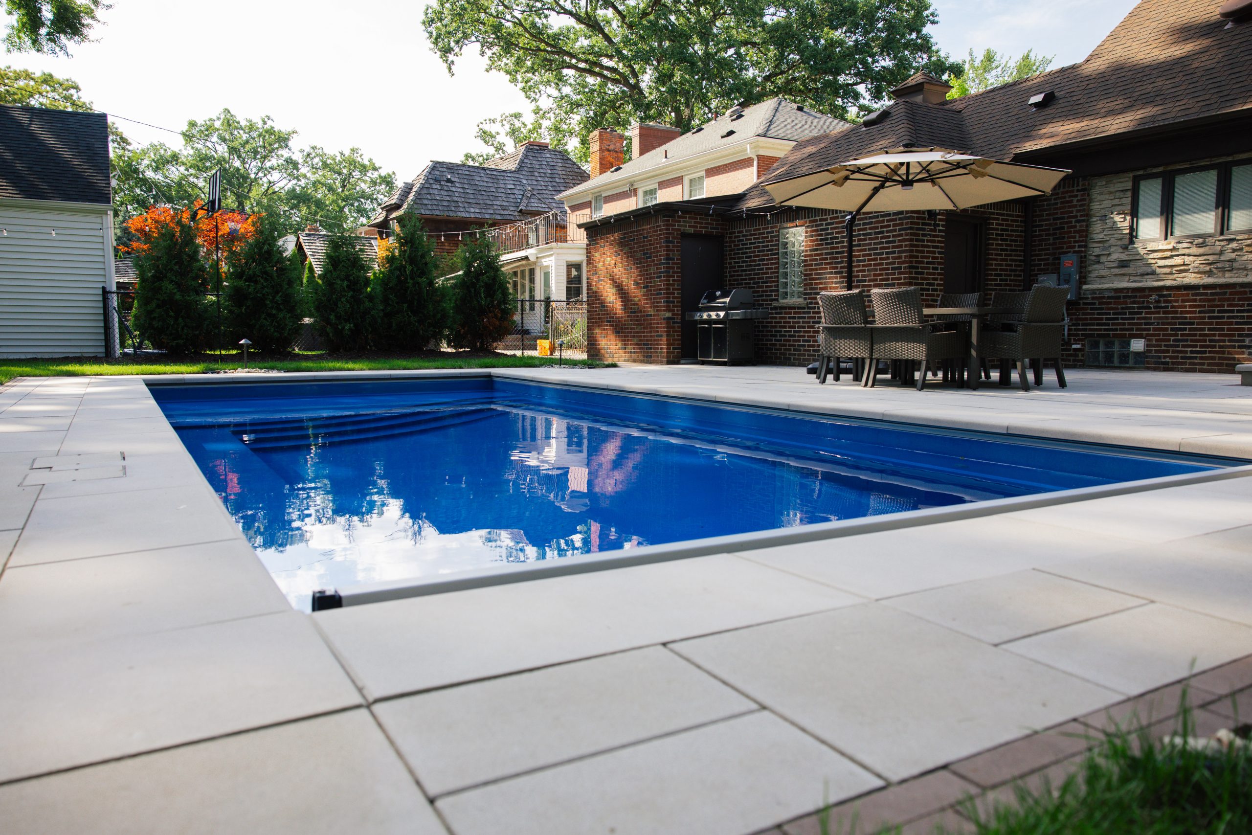 Fiberglass Pool Installation, Paver Patio, New Landscape Installation & Outdoor Living project in Dearborn, MI.