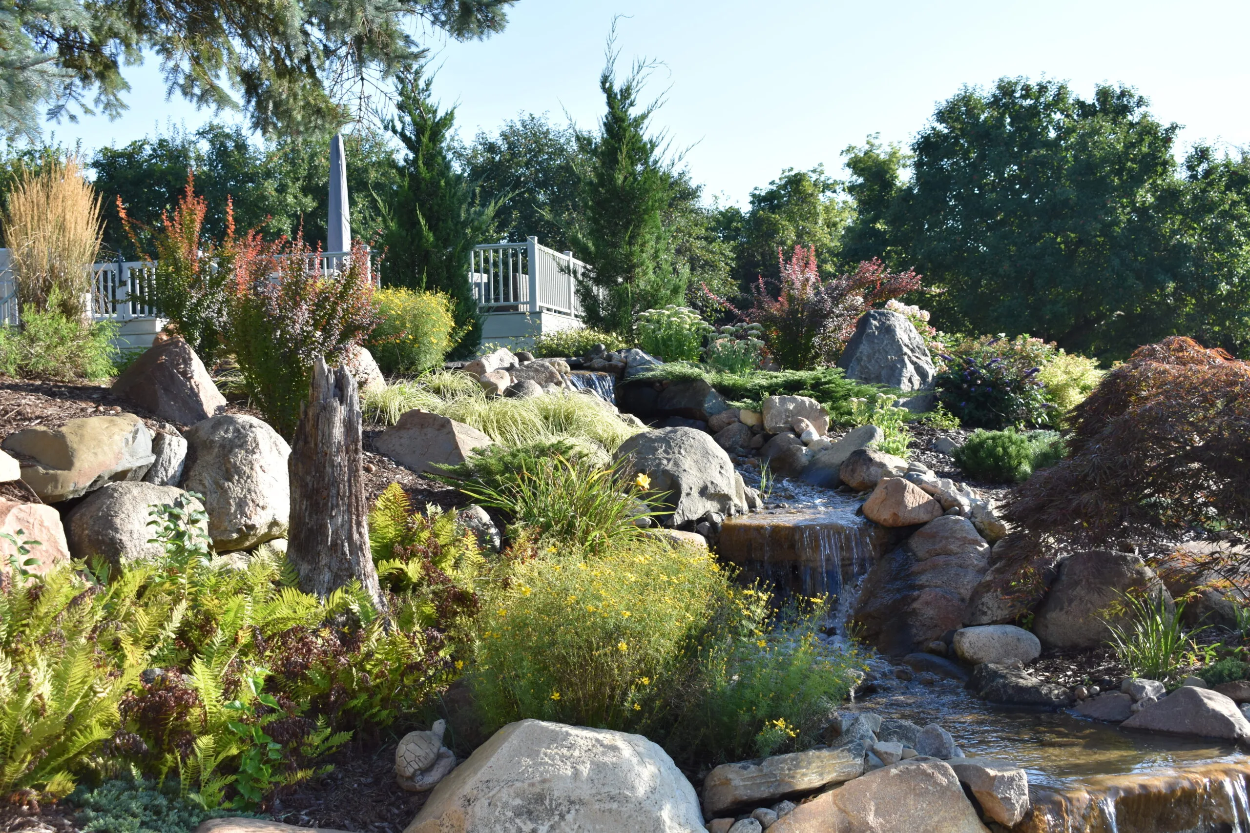 Custom-designed ponds and waterfalls add elegance and charm to your landscape, becoming a stunning focal point that enhances the beauty and value of your property.