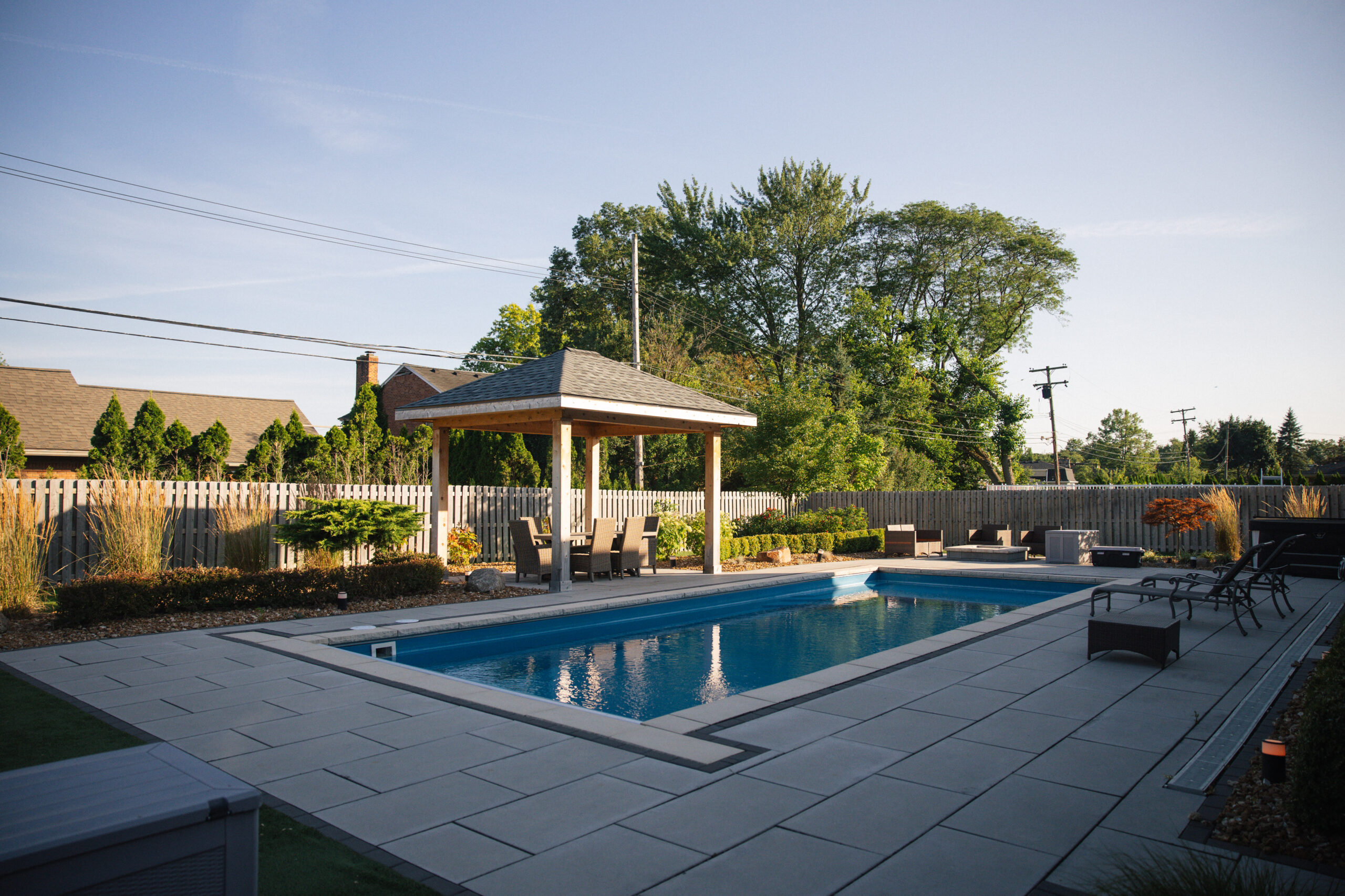 For complete protection from the sun and rain, consider a pavilion built by professionals using only premium materials. These features are perfect shelters for outdoor living areas, including outdoor kitchens, outdoor dining rooms, and entertainment areas. Your friends and family will appreciate a shaded area near your pool to take a break from the hot sun. Include an outdoor fireplace for chilly fall evenings to enhance the ambiance and provide warmth.